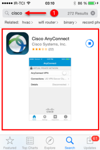 1- وارد AppStore شده و با جستجوی عبارت Cisco اولین اپلیکیشن یافت شده را دانلود و نصب نمایید