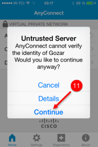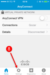 آموزش اتصال به سرویس سیسکو در سیستم عامل IOS به شرح زیر می باشد در این آموزش سعی شده صرف نظر از ورژن سیستم عامل به طور ساده و تصویری به صورت مرحله ای شرح داده شود لطفا جهت راه اندازی بدون مشکل این سرویس آموزش را طبق مراحل ذکر شده پیش ببرید.